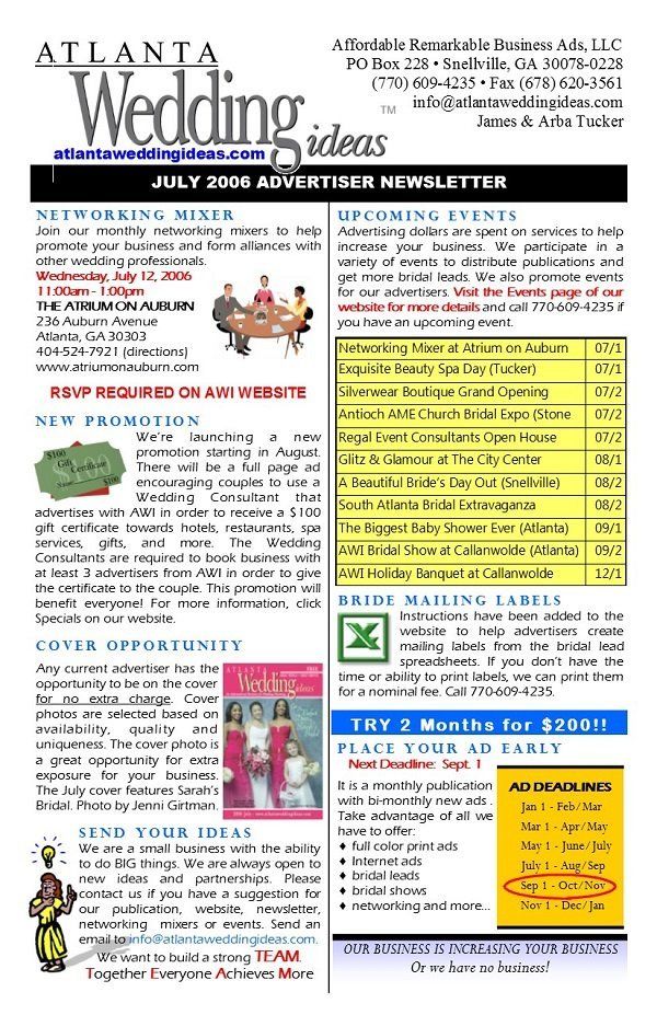 - Wrote a monthly email newsletter with wedding industry information