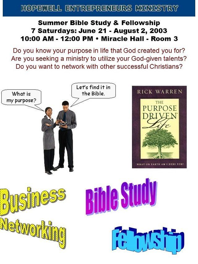- Held monthly meetings that included bible study, speakers, and fellowship